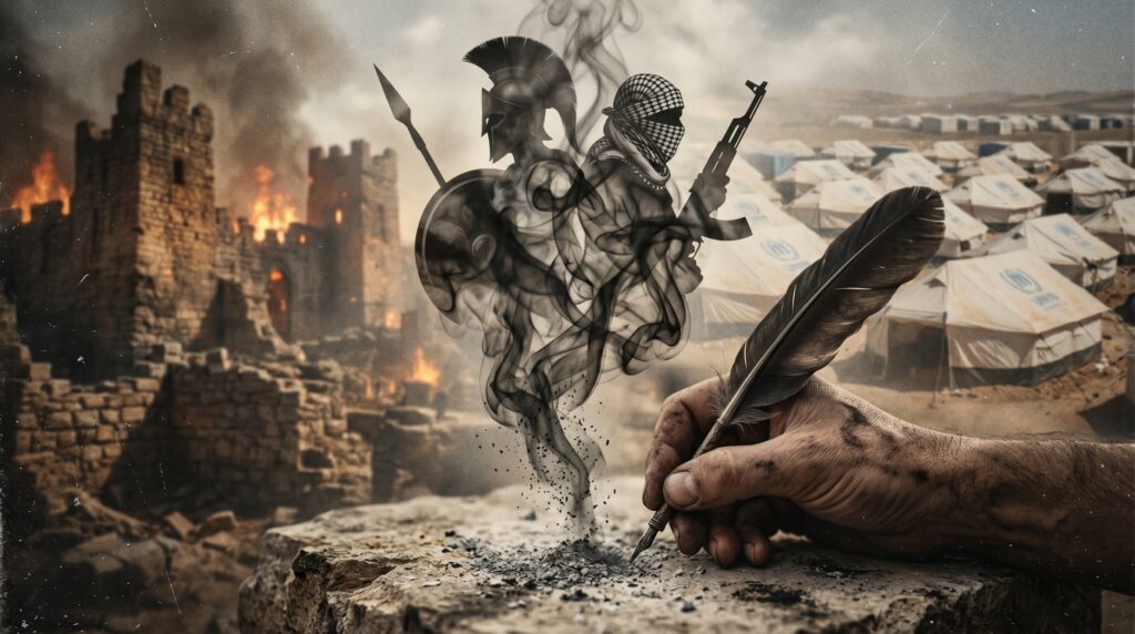 حاول درويش أن يكونَ “هوميروس الطّرواديّ”، أن يمنحَ المهزومين لغةً تتفوّقُ على روايةِ المنتصر. كان يرى أنّ الهزيمةَ الحقيقيّةَ هي أن تعجزَ عن كتابةِ قصّتك. وفي نصوصهِ، كان يفكّكُ أساطيرَ العدوّ ليُثبتَ أنّ صاحبَ الأرضِ لا يملكُ الجغرافيا فحسب، بل يملكُ الحقّ الحصريّ في صياغةِ أبجديّةِ المكان. كان تمرّدهُ تمرّداً معرفيّاً؛ إذ أدركَ أنّ الشّعرَ هو السّلاحُ الوحيدُ لإنقاذِ طروادةَ الفلسطينيّةِ من النّسيان.